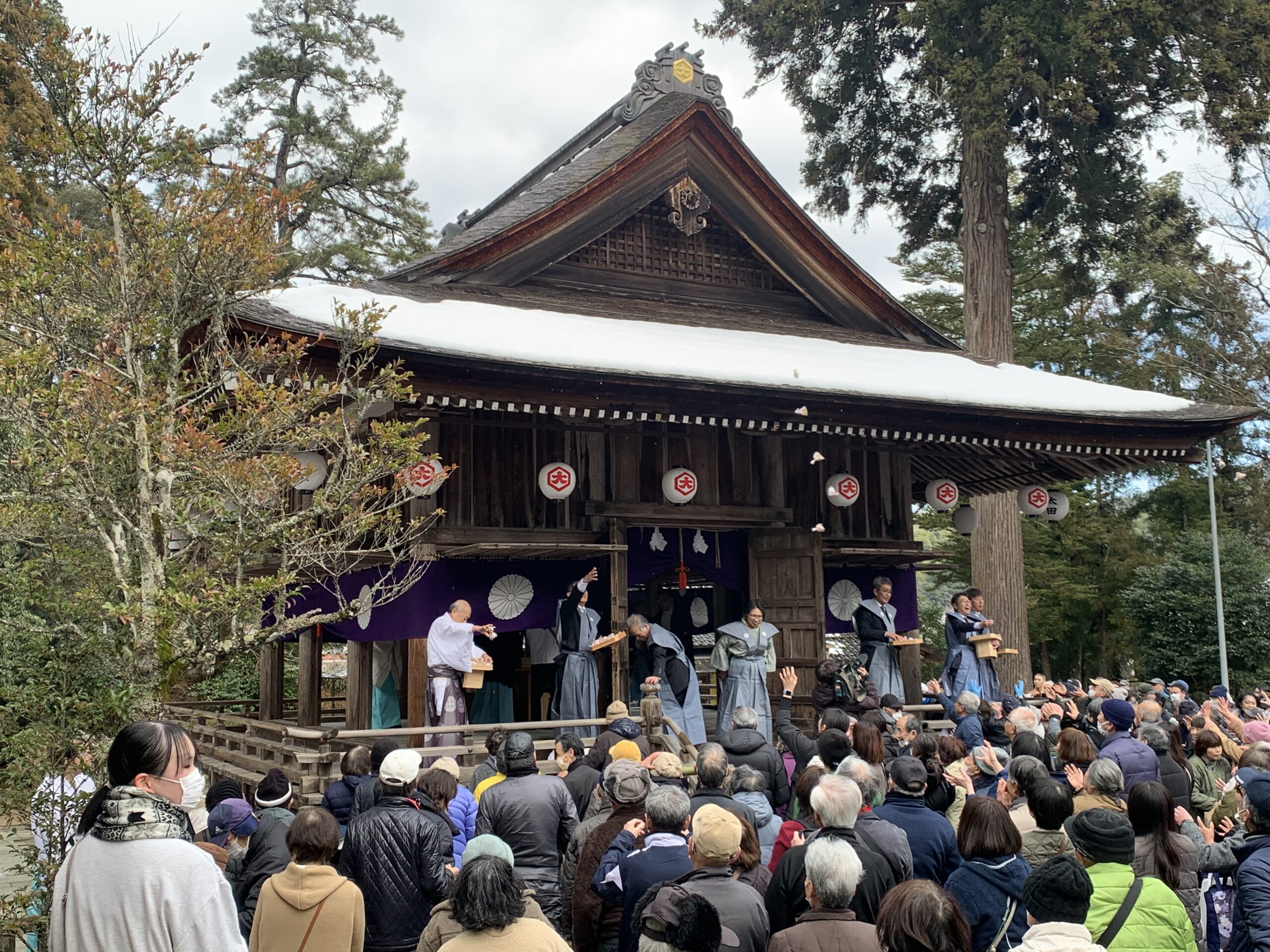 Matsue — As dawn broke over snow-covered Kumano Taisha Shrine on Feb. 3, the morning air was filled with the sounds of shovels scraping against stone paths. Ujiko or Shinto parishioners were preparing for one of the region’s most cherished traditions—and more than 500 visitors would soon arrive to celebrate Setsubun, the traditional bean-throwing festival marking the eve of spring under Japan’s old calendar.