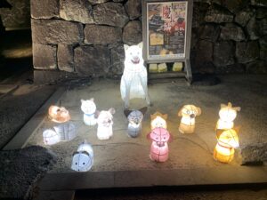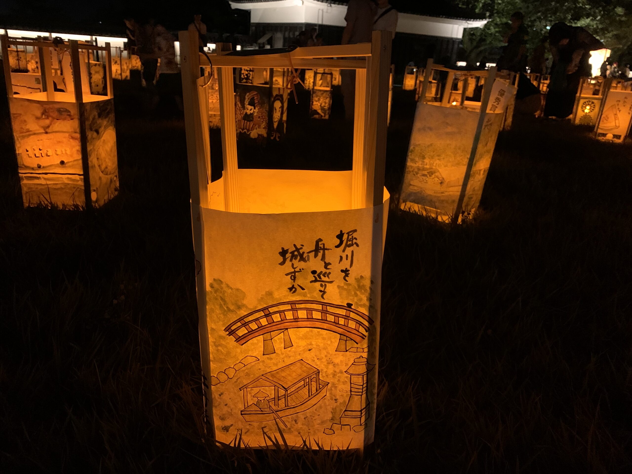On the water, Horikawa boat tours drift through the moat and canals, surrounded by flickering light. On 27th September, passengers listened to ghost stories told in Japanese while gliding across the water — an experience as if lifted from the pages of Kwaidan. At Shiomi Nawate Street, where Hearn’s former residence still stands, lanterns lit the narrow lane. At the Otemon Gate, a towering folding-screen lantern and bamboo installations welcomed visitors, creating an atmosphere where art and tradition meet.