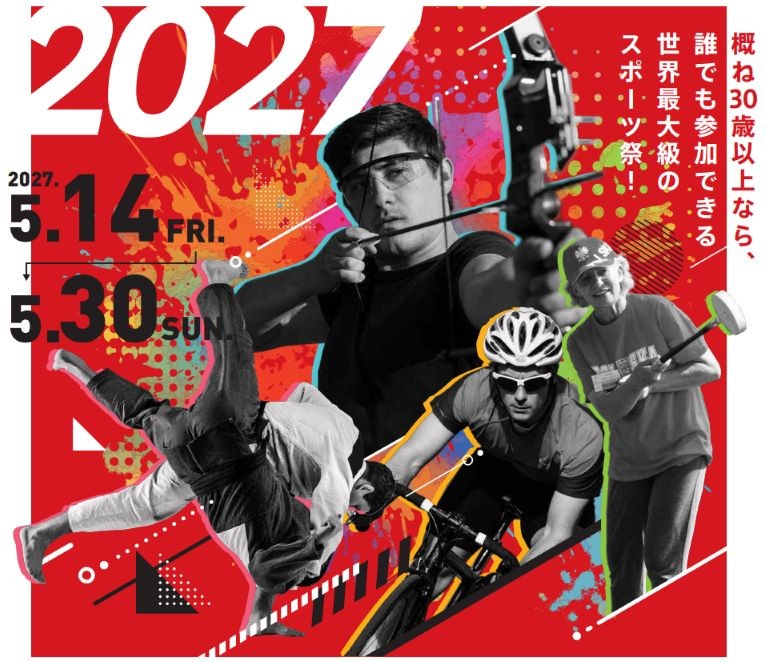 From May 14 to May 30, 2027, the World Masters Games will take place across the Kansai region. This international event welcomes sports enthusiasts generally aged 30 and over, with a target of approximately 50,000 participants from around the world.